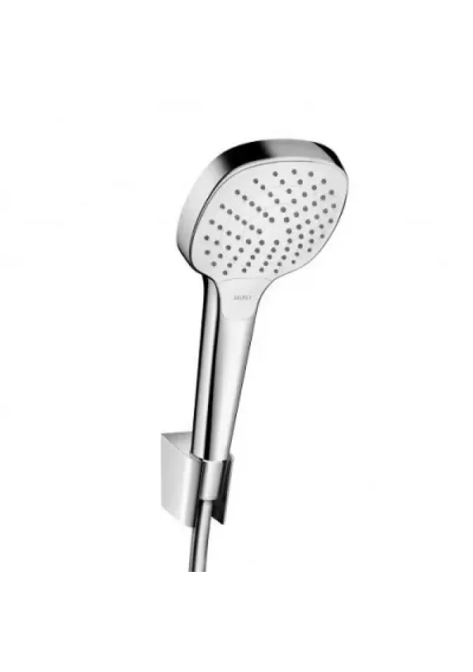 Setul de dus contine: para de dus Croma Select E Vario Alb (26812400), suport pentru dus Porter S (28331000), furtun dus Isiflex 1600 mm (28276000). Dimenisune para dus: Ø110 mm, cu 3 tipuri de jet: Rain, IntenseRain, TurboRain iar selectarea tipului de jet se face prin intermediul butonului Select. Suport perete din plastic cu finisaj cromat iar debit apa maxim: 15 l/min (la 0.3 bari). Tehnologii: QuickClean, Select, XXL Performance. Garantie 60 luni. Produs fabricat de Hansgrohe.