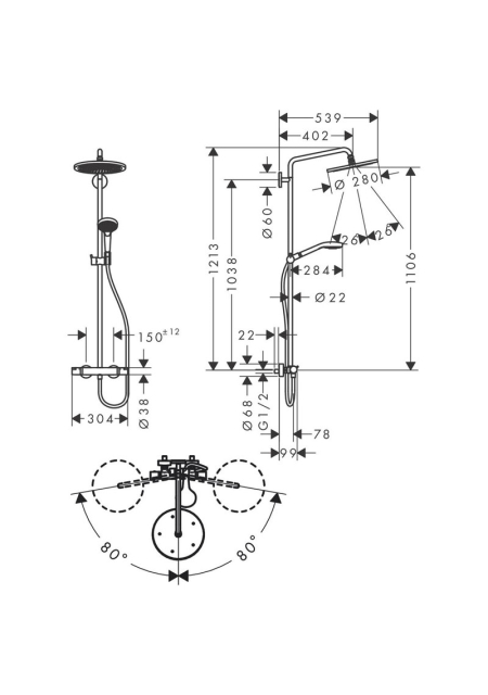 Palarie de dus Croma 280, 1 jet (cod: 26220700)