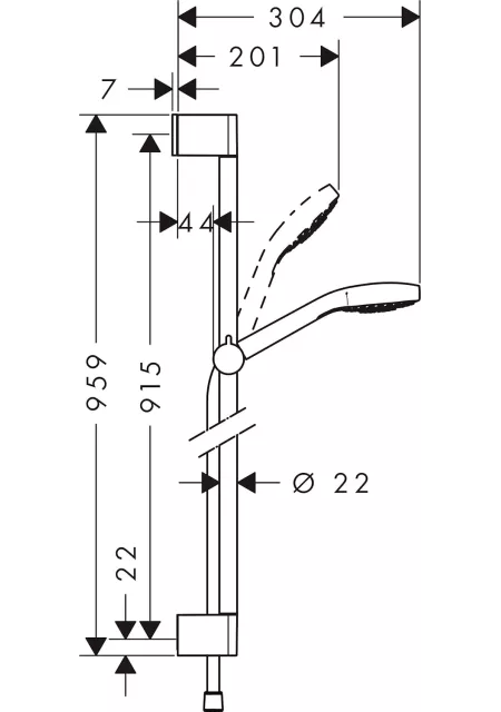 CROMETTA, ALB/CROM, SET DE DUS 100 1 JET 6L/MIN CU BARA DE DUS 65 CM, 26554400