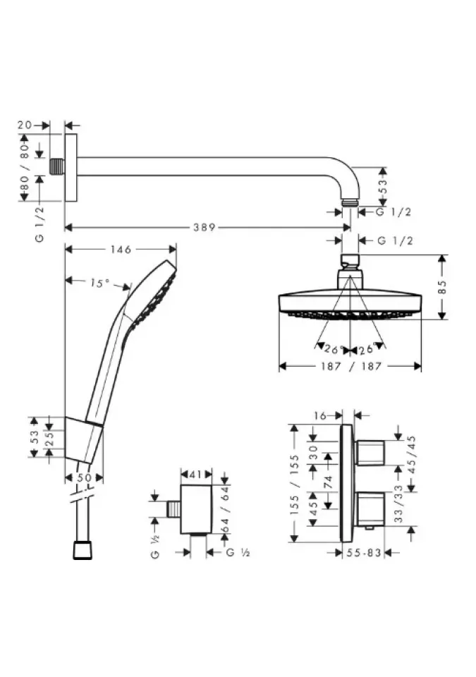- articulație rotundă cu unghi reglabil al pălăriei de duș