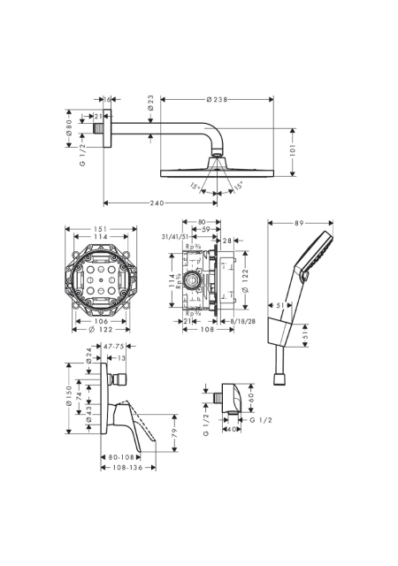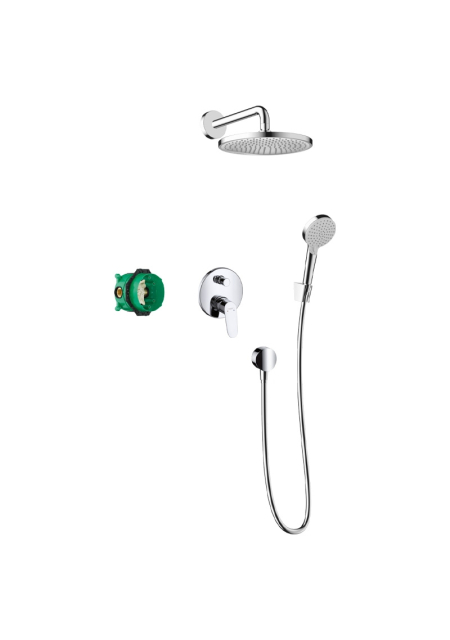 setul contine: palarie dus, brat palarie dus, para dus, baterie monocomanda, corp incastrat, racord, suport para dus, furtun
