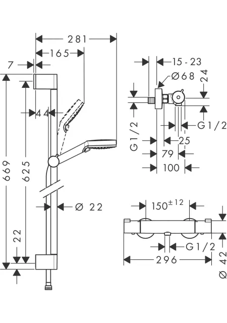 CROMETTA, SET DE DUS CU BATERIE DE DUS TERMOSTATATA ECOSTAT 1001, BARA DE DUS 65, FURTUN DE DUS, 27812400