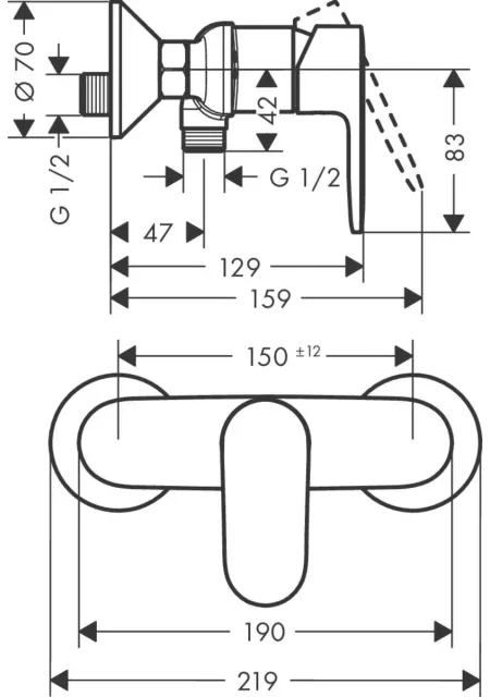 - • Format din: para de dus, bara de dus, furtun si suport pentru para de dus;