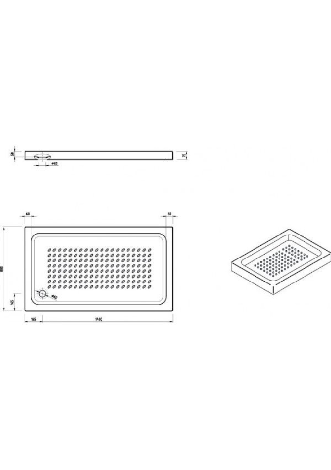 CUVA DUS ACRYL ELBA ALB 140X80X7.5 ANTISLIP , FARA SIFON