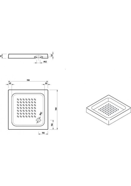 CUVA DUS ACRYL ELBA ALB 70X70X7.5 ANTIDERAPANTA