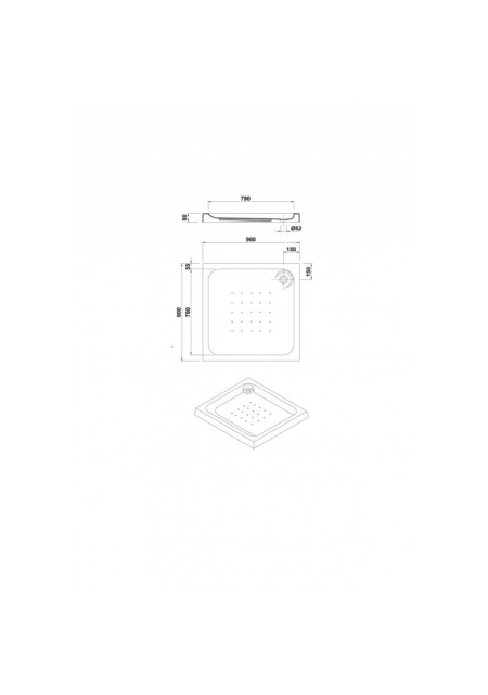 CUVA DUS ACRYL ESFERA PATRATA ALB 90X90X8 ANTISLIP