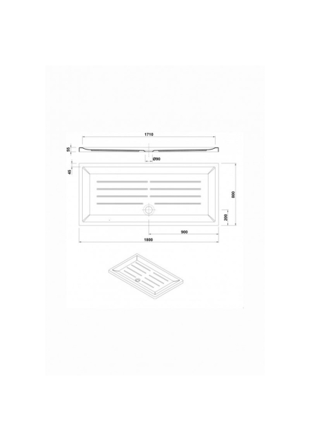 CUVA DUS ACRYL VITA 1800X800X50, RECTANGULARA CU SIFON