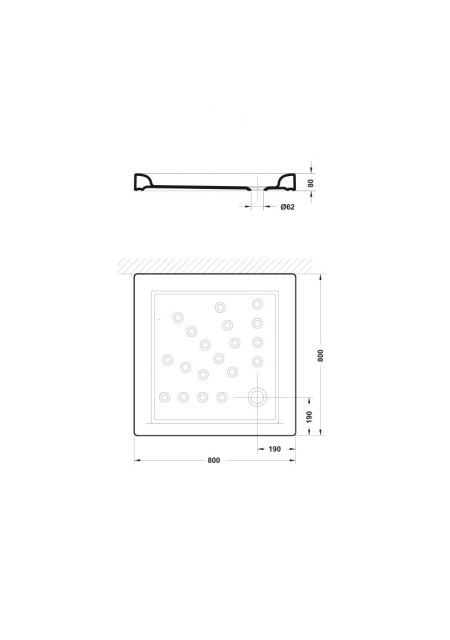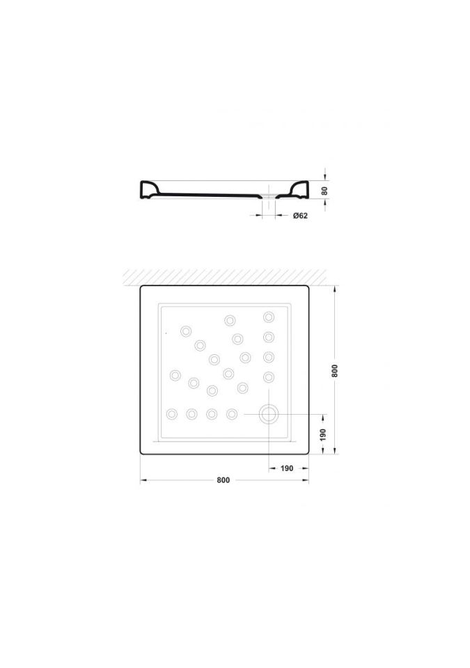 CUVA DUS CERAMICA PATRATA ATLAS 800X800X80 ALB FARA SIFON