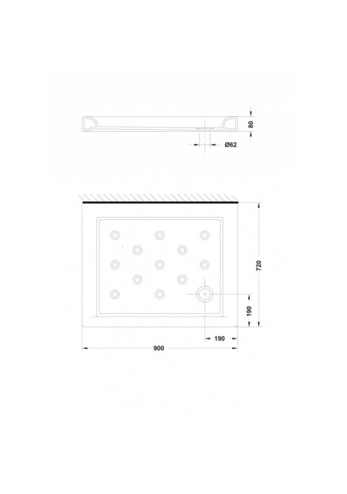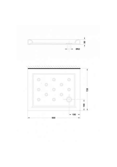 CUVA DUS CERAMICA RECTANGULARA ATLAS 900X720X80 ALB FARA SIFON
