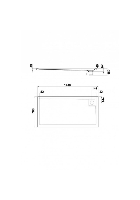 CUVA DUS RECTANGULARA SIGMA 1400X700 CU SIFON 90 MM