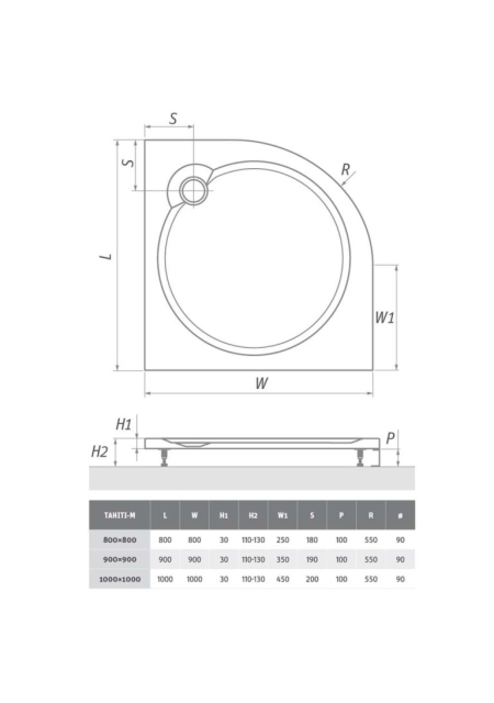 CUVA DUS SEMIROTUNDA 900X900X30 TAHITI-M