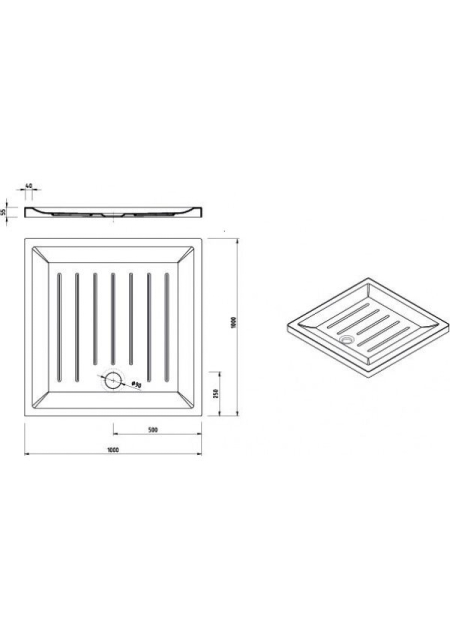 CUVA DUS VITA 1000X1000 PATRATA CU SIFON