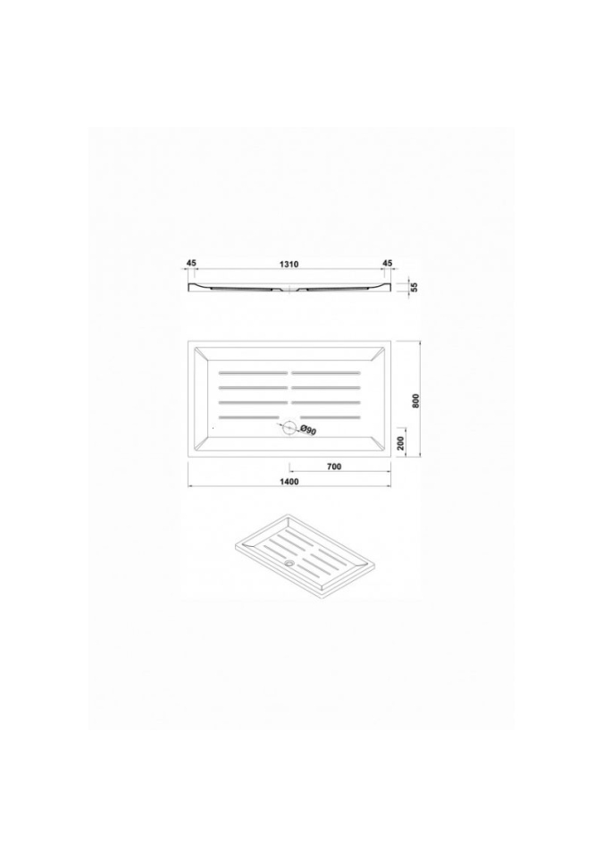 CUVA DUS VITA 1400X800 RECTANGULARA CU SIFON