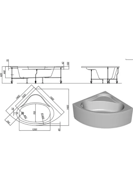 dimensiuni: 140 cm x 140 cm x 64 cm