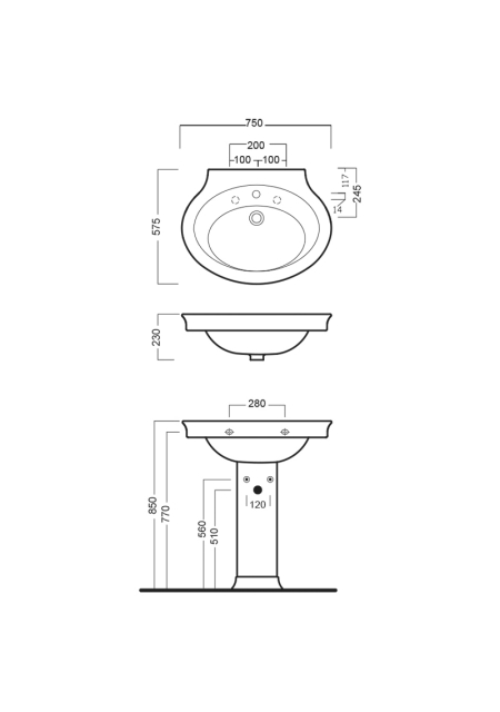 pentru a acoperi sifonul, lavoarul poate fi completat cu un picior central