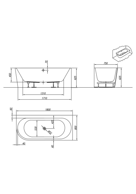 DREAM/O L SP, ALBA, CADA FREESTANDING, DE STANGA, CU PANOU INTEGRAT, 180X80CM, ACRIL,574360
