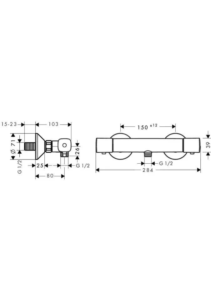 distanța dintre axe: 150 mm ± 12 mm