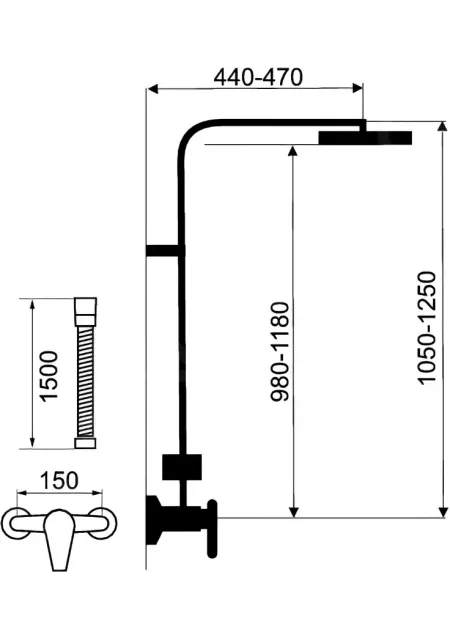 pachetul include baterie, pălărie de duș de 280 x 280 mm și duș de mână cu bară de duș