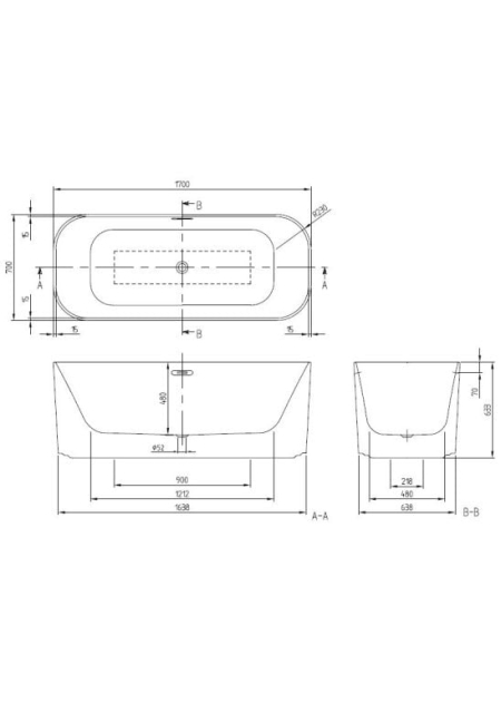 - dimensiunile fundului căzii de baie: 121,2 x 48 cm