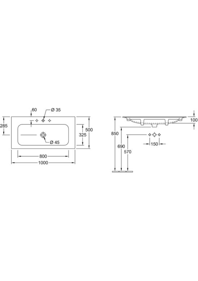 - dimensiuni bazin: 80 x 32,5 cm