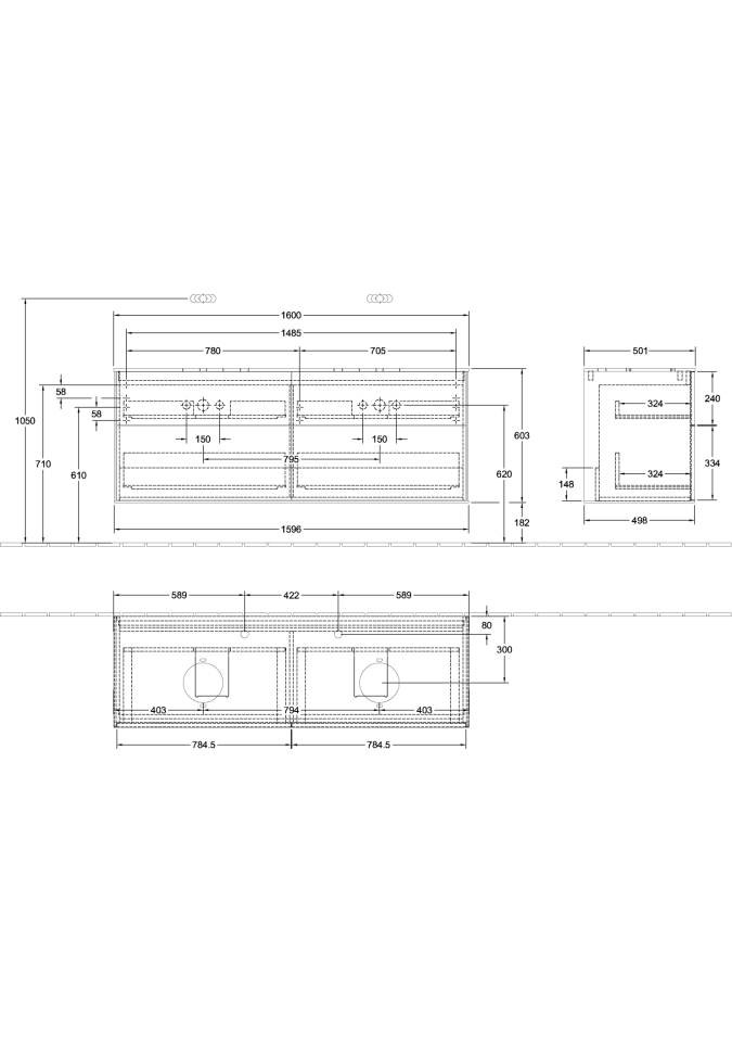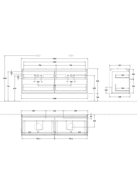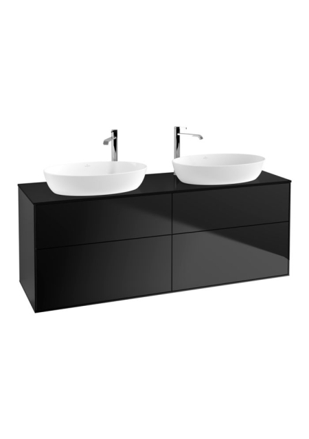 FINION, BLACK MATT LACQUER/ GLASS BLACK MATT, MOBILIER SUSPENDAT PENTRU DOUA LAVOARE 160X50.1X60.3CM, CU 4 SERTARE, FARA ILUMINARE LED, F96200PD