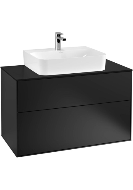 FINION, BLACK MATT LACQUER. MOBILIER SUSPENDAT PENTRU LAVOAR 100X50.1X60.3CM, CU 2 SERTARE, PANOU GLASS BLACK MATT, F10200PD