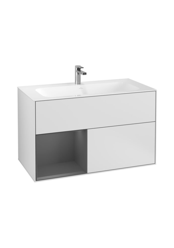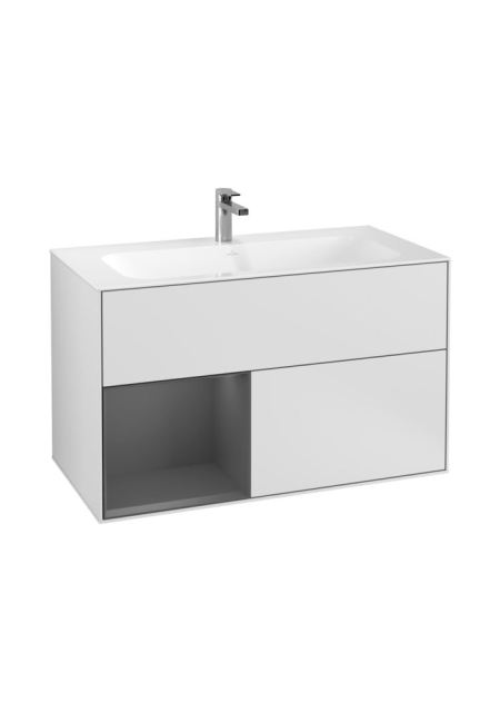 FINION, BLACK MATT LACQUER, MOBILIER SUSPENDAT PENTRU LAVOAR 99.6X49.8X59.1CM, CU 2 SERTARE, ILUMINARE LED, CU RAFT PE STANGA, F030PDPD