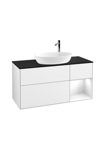 FINION, GLOSSY WHITE LACQUER, MOBILIER SUSPENDAT CU ILUMINARE LED INCLUSA, 120X60.3X50.1CM, CU 3 SERTARE SI RAFT PE DREAPTA, G952GFGF