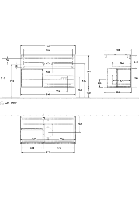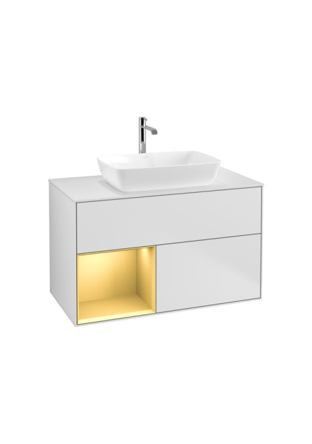 FINION, WHITE MATT LACQUER, MOBILIER SUSPENDAT 100X50X60.3CM CU ILUMINARE LED, 2 SERTARE SI UN RAFT GOLD MATT LACQUER, F771HFMT