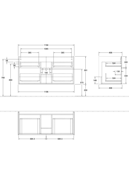 FINION, WHITE MATT LACQUER, MOBILIER SUSPENDAT PENTRU LAVOAR CU 4 SERTARE, 119.6X49.8X59.X1CM, F05000MT