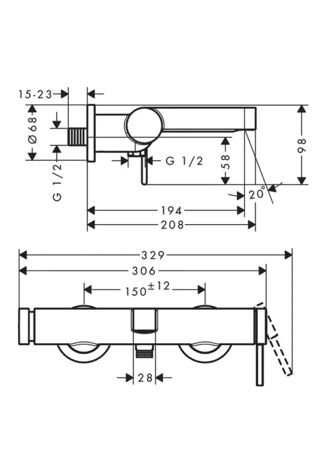 Baterie cada dus monocomanda, cu montaj pe perete, cu cartus ceramic, cu deviator de presiune Select cu resetare automata, cu amortizor de zgomot, cu pulverizare normala, cu debit pipa la 3 bar de 19 l/min si debit dus la 3 bar de 14,7 l/min, presiune minima de lucru de 1 bar iar presiune maxima de 10 bari, compatibila cu incalzitoare de apa cu flux continuu, conexiuni in forma de S, avand distanta centrala de 150 ± 12 mm si dimensiunea conexiunii DN15. Tehnologii Hansgrohe: Air Power - consum redus de apa prin mixare cu aer; Select - jetul de apa poate fi controlat printr-o simpla apasare a butonului Select. Finisaj produsului este alb mat (matt white). Garantie 60 de luni. Produs fabricat de Hansgrohe.