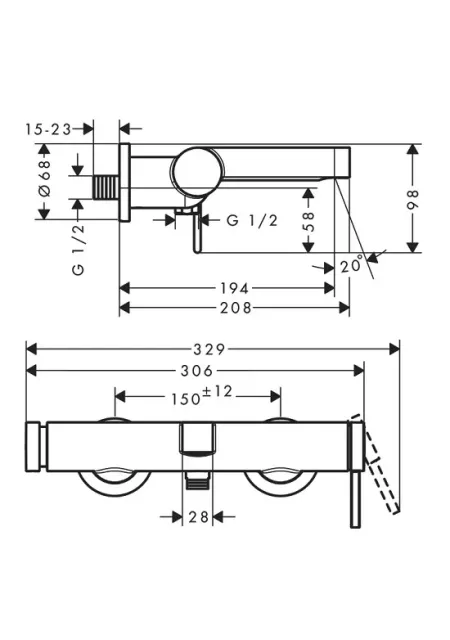 Baterie cada dus monocomanda, cu montaj pe perete, cu cartus ceramic, cu deviator de presiune Select cu resetare automata, cu amortizor de zgomot, cu pulverizare normala, cu debit pipa la 3 bar de 19 l/min si debit dus la 3 bar de 14,7 l/min, presiune minima de lucru de 1 bar iar presiune maxima de 10 bari, compatibila cu incalzitoare de apa cu flux continuu, conexiuni in forma de S, avand distanta centrala de 150 ± 12 mm si dimensiunea conexiunii DN15. Tehnologii Hansgrohe: Air Power - consum redus de apa prin mixare cu aer; Select - jetul de apa poate fi controlat printr-o simpla apasare a butonului Select. Finisaj produsului este crom lucios. Garantie 60 de luni. Produs fabricat de Hansgrohe.