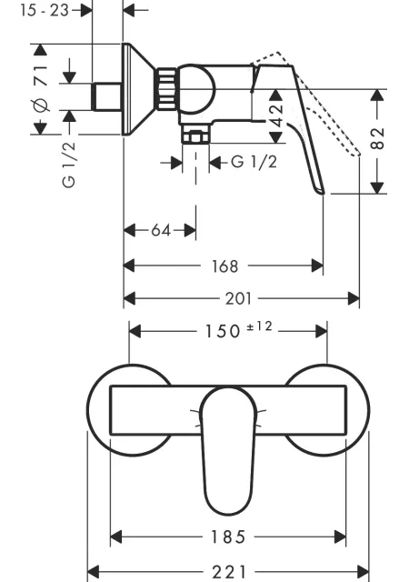 • Montaj aplicat, pe perete, prin intermediul a doua orificii;