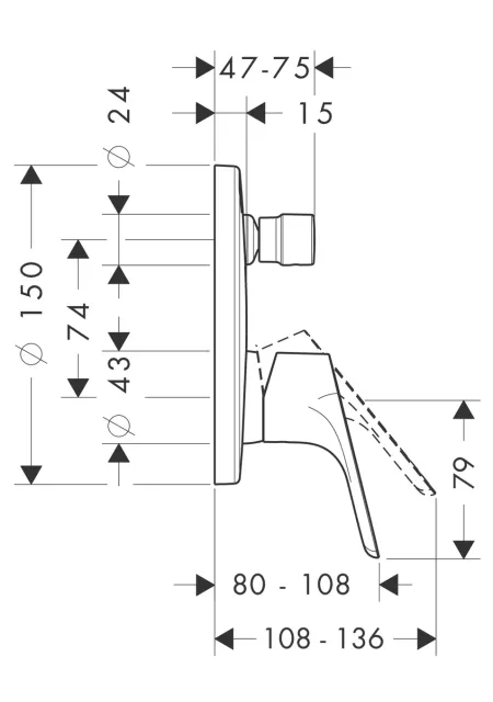 componentă externă- element de instalare vândut separat- mixer ceramic- servire 2 dozatoare- debit: gura de scurgere 30 l/min., duș 24 l/min- întrerupător pentru baie/duș- clapetă de reținere- amortizoare de zgomot- set: mâner, manșon, rozeta, întrerupător de deviere, unitate de instalare- cu sistem de siguranță integrat în conformitate cu EN1717– racord extern pentru conectarea la gura de scurgere Exafil- culoare cromată