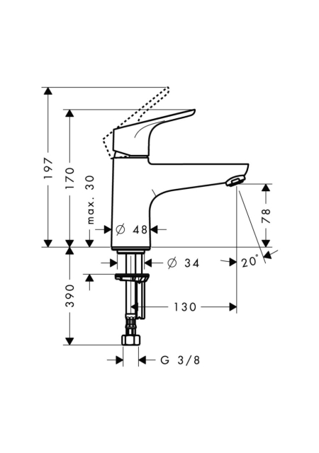 de 130 mm - tip de conexiune: G 3/8 conexiuni