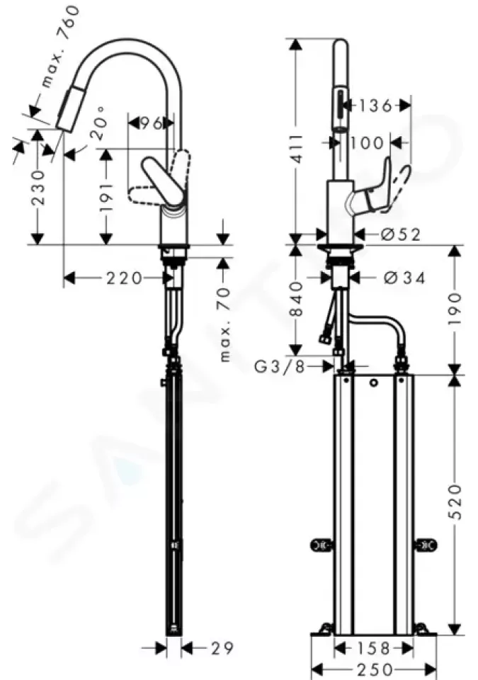 FOCUS M41, NEGRU MAT, BATERIE BUCATARIE 240, CU PIPA EXTRACTIBILA, 2 JETURI, 31815670