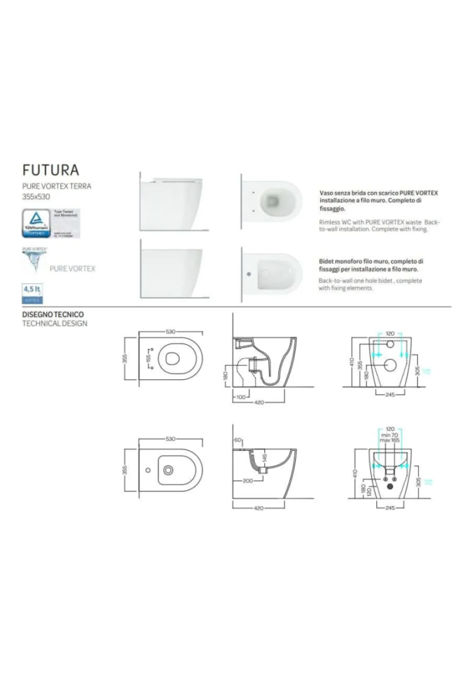 FUTURA, ALB, VAS WC BACK TO WALL, RIMLESS PURE VORTEX, 35.5X53CM, 00Y9B901