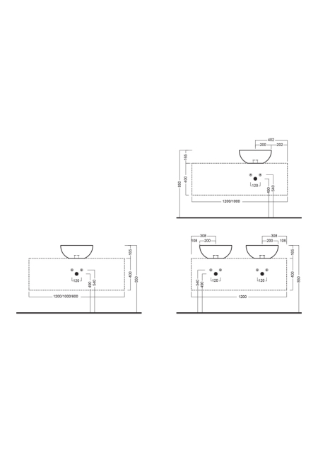 lavoarul se monteaza fie pe un blat din marmura, travertine, MDF sau pe un mobilier care in partea de sus se inchide cu un blat;