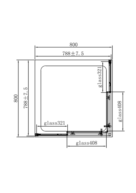 cabina de dus patrata, formata din 2 usi culisante si 2 pereti laterali