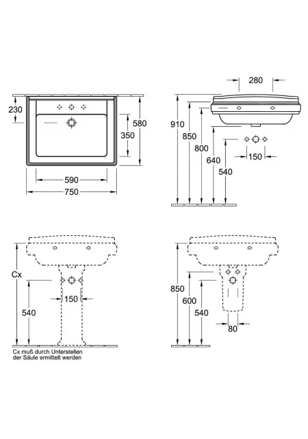 HOMMAGE, ALB ALPIN CERAMIC PLUS, LAVOAR CU 3 GAURI PENTRU BATERIE 75X58X20CM, CU PREAPLIN, 7101A1R1