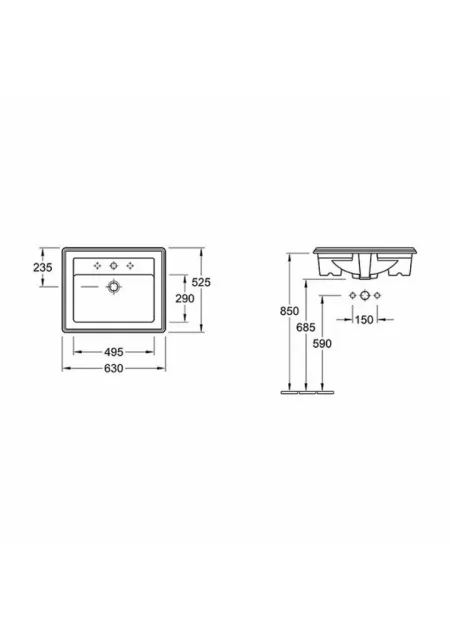 Lavoarul din gama Villeroy&Boch, colectia Hommage, este realizat din Ceramic Plus (finisaj hidrofob -respinge apa, care ajuta la pastrarea curateniei in baie. Tehnologia reduce porozitatea suprafetei si micsoreaza asperitatile stratului de glazura. Ca urmare apa formeaza picaturi care curg liber pe suprafata ceramicii, impreuna cu rezidurile). Lavoarul se monteaza incastrat, este special conceput pentru mobilierul Hommage, are forma dreptunghiulara, este creat in stil victorian, prezinta preaplin si trei orificii pentru baterie, are culoarea alb alpin si are urmatoarele dimensiuni 630x520xH165 mm. Colectia Hommage, este un produs fabricat in atelierele Villeroy and Boch, la Mettlach, Germania, Handmade (finisat manual), vasul facand parte din familia de lux , HOMMAGE, realizat in stil ART DECO.