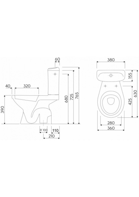 rezervor cu alimentare laterala, 3/6 L