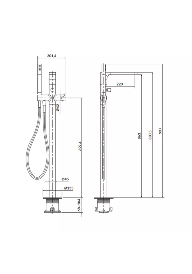 INVERTO, NEGRU MAT, BATERIE CADA/DUS FREESTANDING, MANER AURIU, S951-283
