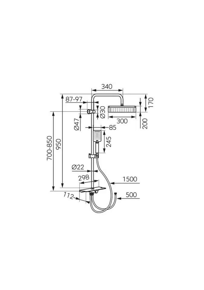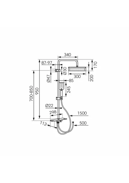 Bara metalica de dus fixa 950 mm, cu distanta reglabila intre suporti - poate fi instalat in gauri deja existente in perete