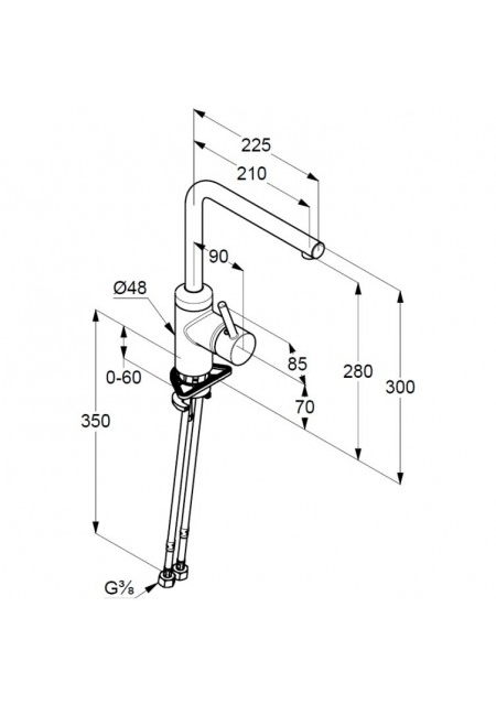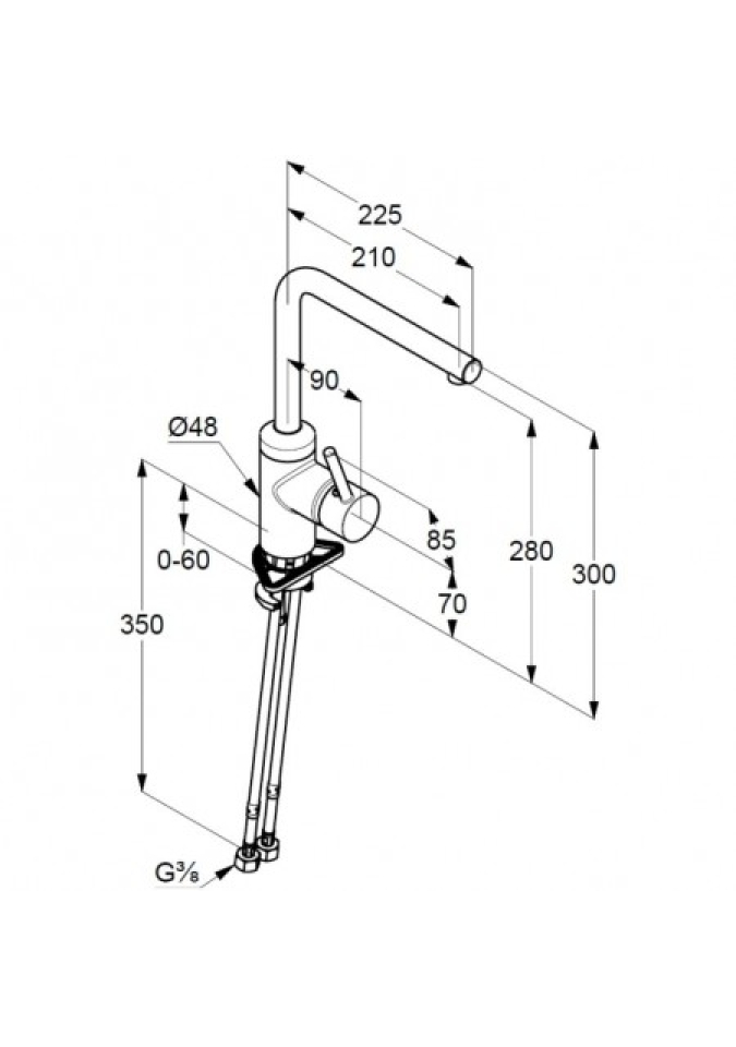 Inaltime baterie: H300 mmLungime pipa: 225 mmFinisaj: negru matMontaj: pe chiuvetaCaracteristici:- baterie monocomanda- pipa pivotanta 360°- aerator- cartus ceramic- debit 7.6 l/min- racorduri flexibile G 3/8"