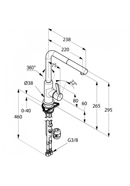 Baterie cu monocomanda cu montaj pentru o singura gaura