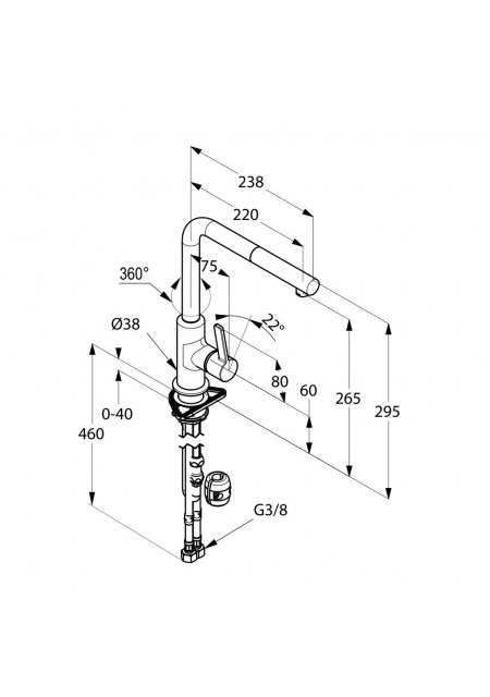 Baterie cu monocomanda cu montaj pentru o singura gaura