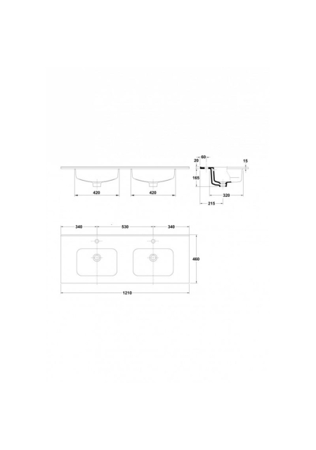 LAVOAR DUBLU SMILE 121 X 46 X 1,5 CM ALB