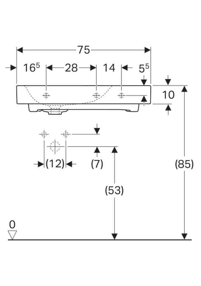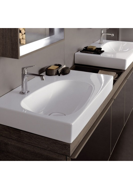 LAVOAR GEBERIT CITTERIO CU BLAT 75X50 CM, ORIFICIU BATERIE STANGA, FARA PREAPLIN RAFT DREAPTA, KERATECT, ALB