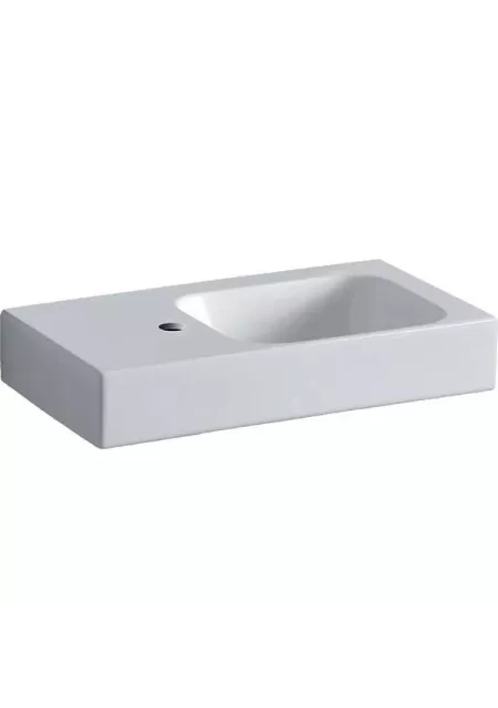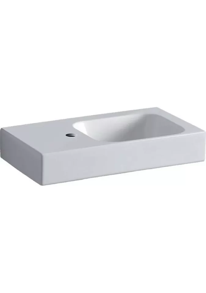 Lavoarul asimetric din argila refractara fina din gama Geberit, colectia Icon, este de culoare alba si are urmatoarele dimensiuni: 380x280xH135 mm, prezinta orificiu de robinet pe partea stanga si nu prezinta preaplin. Lavoarul se monteaza incastrat si prezinta blat pe partea stanga. Design liniar drept, linii clare si flexibilitate sporita – acestea sunt caracteristicile seriei complete de produse de baie Geberit iCon. O gama extinsa de vase ceramice si mobilier pentru baie intr-un stil modern - ofera spatiu liber maxim pentru design si convinge printr-o versatilitate extraordinara. Pentru oameni la fel de versatili. A se achizitiona impreuna cu unul dintre produsele recomandate in sectiunea produselor complementare.